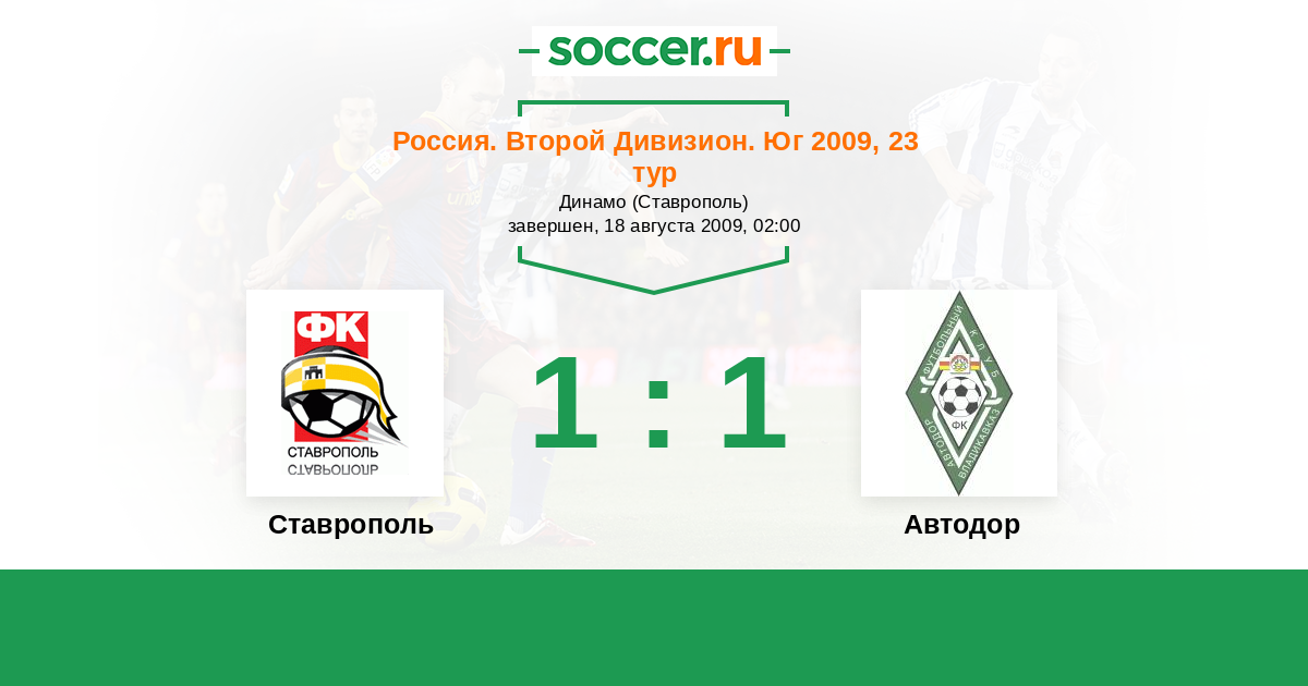 Россия. Вторая лига. Группа 1 30.04.2009 Автодор Логотип футбольный клуб Автодор (Владикавказ) 1:1 Логотип футбольный клуб Ставрополь Ставрополь