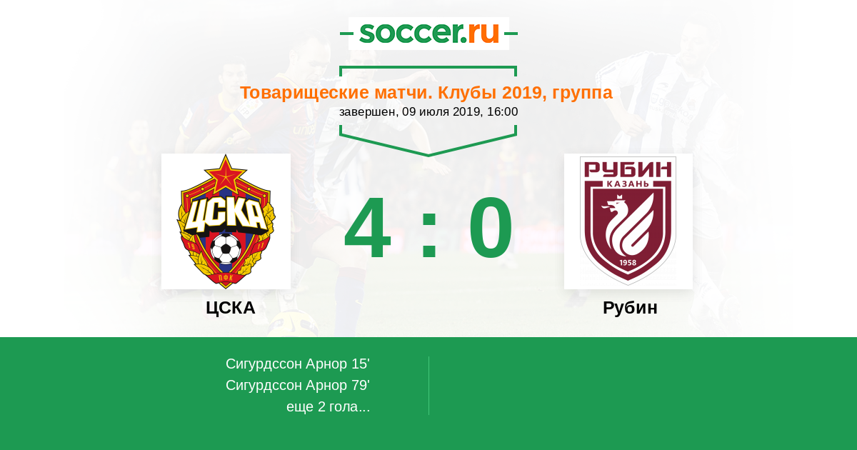 Россия. Премьер-Лига 04.08.2019 Рубин Логотип футбольный клуб Рубин (Казань) 0:1 Логотип футбольный клуб ЦСКА (Москва) ЦСКА