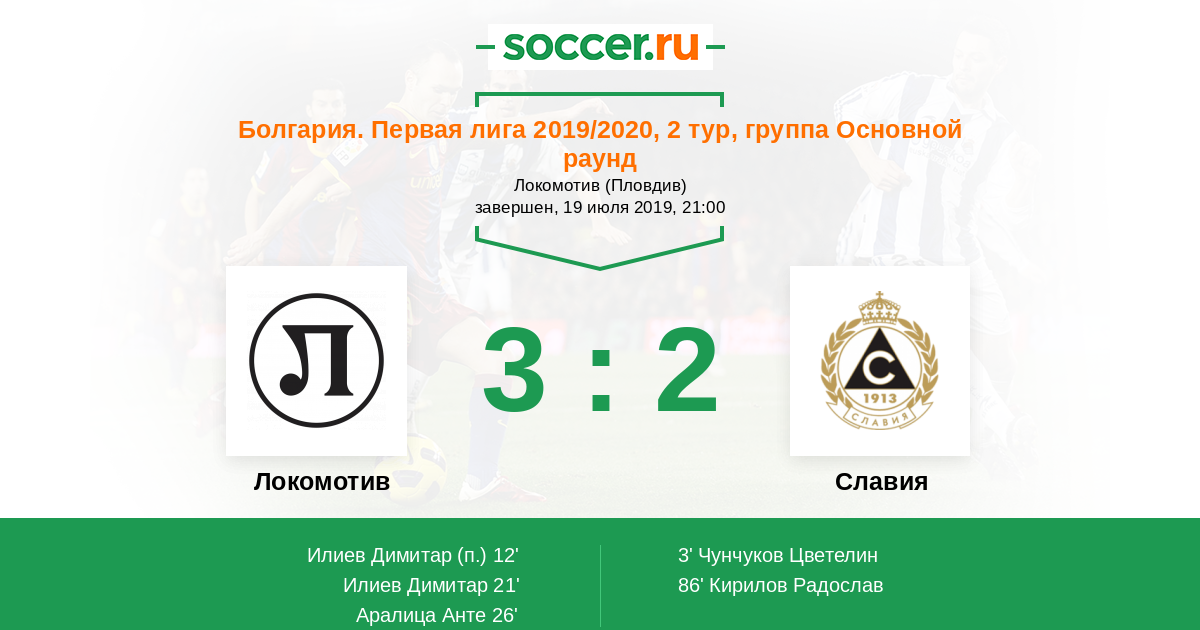 Болгария. Первая лига 29.07.2018 Локомотив Логотип футбольный клуб Локомотив (Пловдив) 2:4 Логотип футбольный клуб Славия (София) Славия