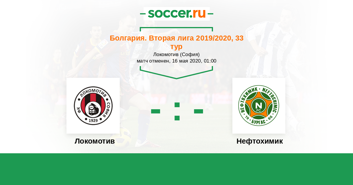 Болгария. Вторая лига 19.08.2020 Нефтохимик Логотип футбольный клуб Нефтохимик (Бургас) 0:1 Логотип футбольный клуб Локомотив (София) Локомотив