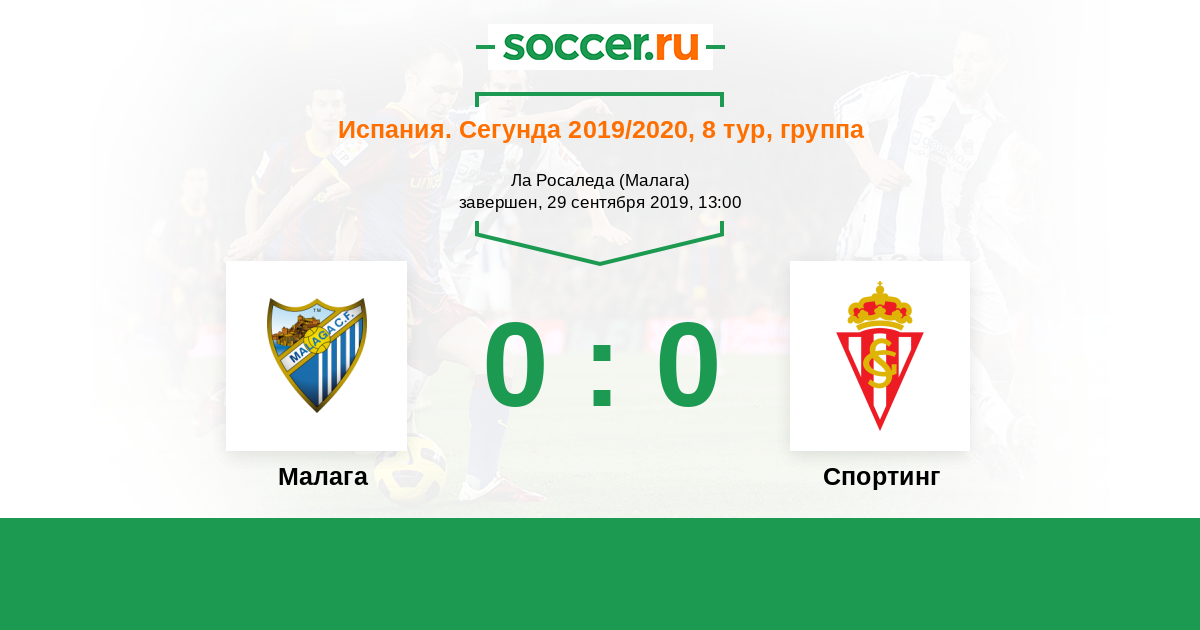 Испания. Сегунда 22.10.2020 Малага Логотип футбольный клуб Малага 1:0 Логотип футбольный клуб Спортинг (Хихон) Спортинг