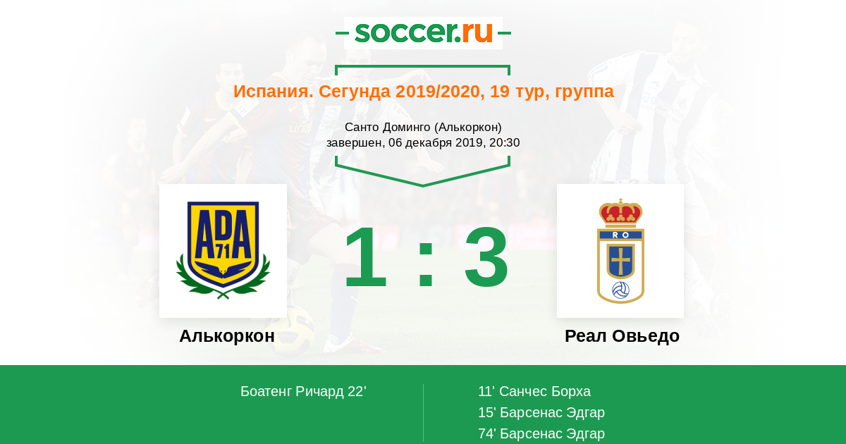 Испания. Сегунда 26.11.2016 Алькоркон Логотип футбольный клуб Алькоркон 5:1 Логотип футбольный клуб Реал Овьедо Реал Овьедо