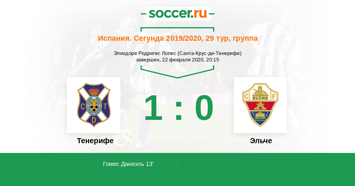 Испания. Сегунда 04.02.2017 Тенерифе Логотип футбольный клуб Тенерифе (Санта-Крус-де-Тенерифе) 2:0 Логотип футбольный клуб Эльче Эльче