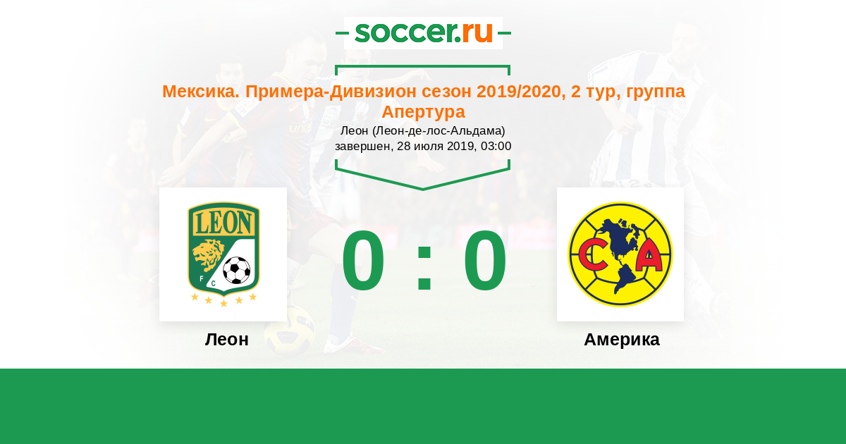 Мексика. Примера-Дивизион 23.08.2018 Леон Логотип футбольный клуб Леон 2:0 Логотип футбольный клуб Америка (Мехико) Америка