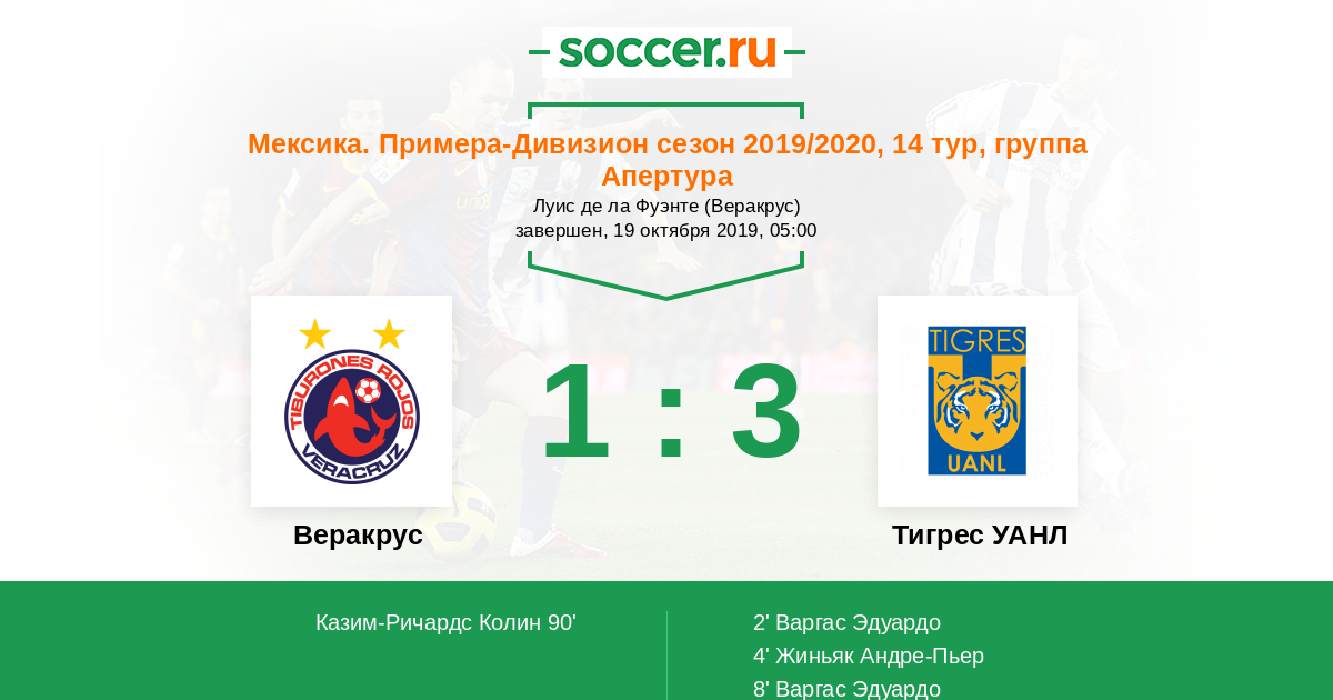 Мексика. Примера-Дивизион 04.10.2014 Веракрус Логотип футбольный клуб Веракрус 0:1 Логотип футбольный клуб Тигрес УАНЛ (Монтеррей) Тигрес УАНЛ