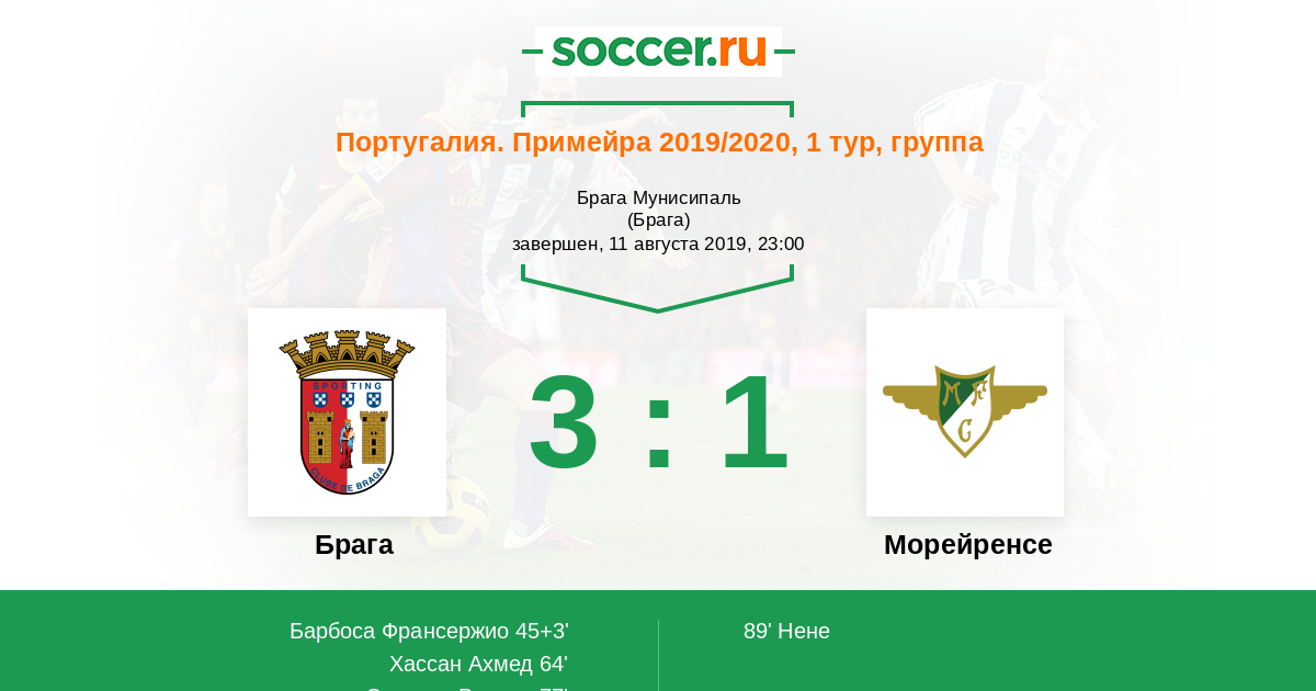 Португалия. Примейра 25.08.2024 Брага Логотип футбольный клуб Брага 3:1 Логотип футбольный клуб Морейренcе (Морейра-де-Конегуш) Морейренcе