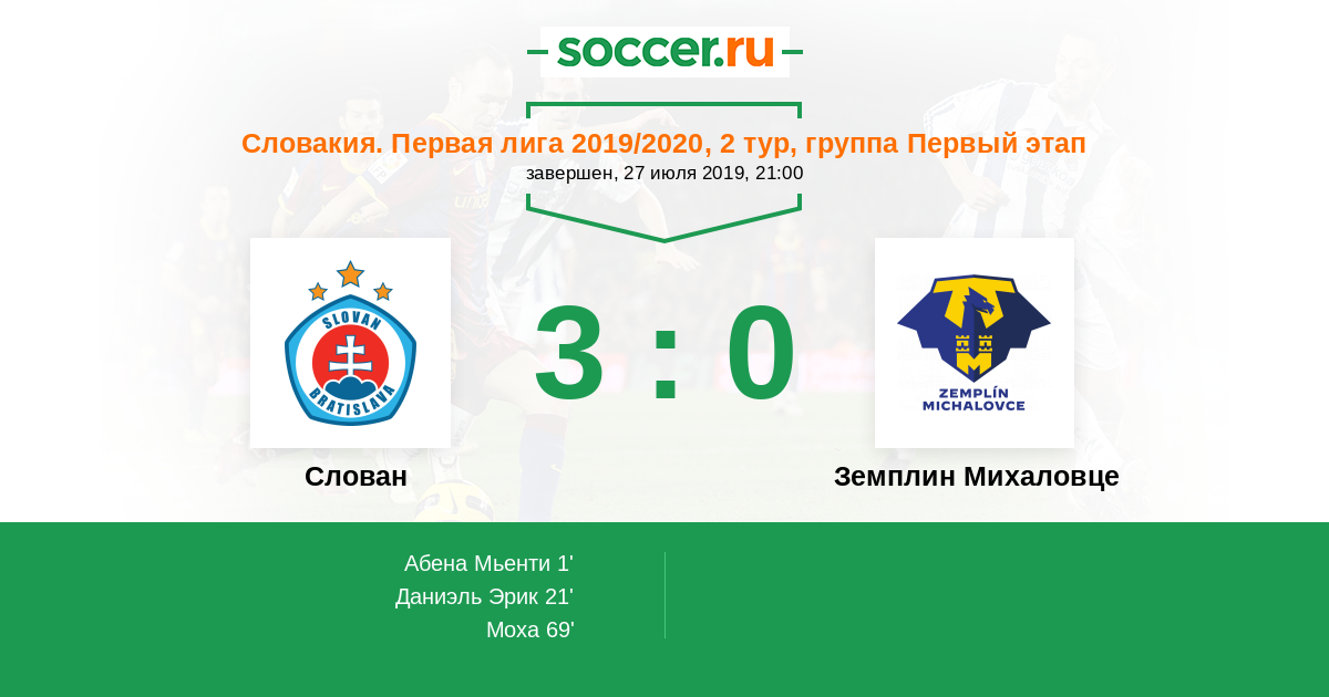 Словакия. Суперлига 11.08.2020 Слован Логотип футбольный клуб Слован (Братислава) 5:0 Логотип футбольный клуб Земплин Михаловце Земплин Михаловце