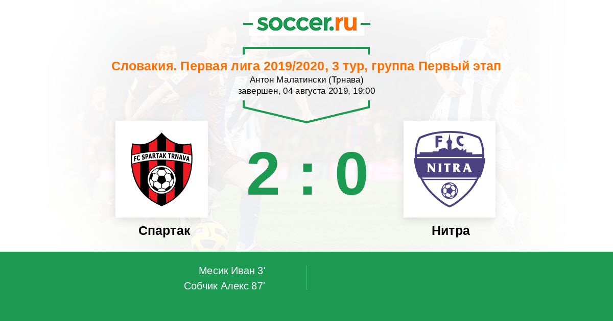 Словакия. Суперлига 10.09.2017 Спартак Логотип футбольный клуб Спартак (Трнава) 2:1 Логотип футбольный клуб Нитра Нитра