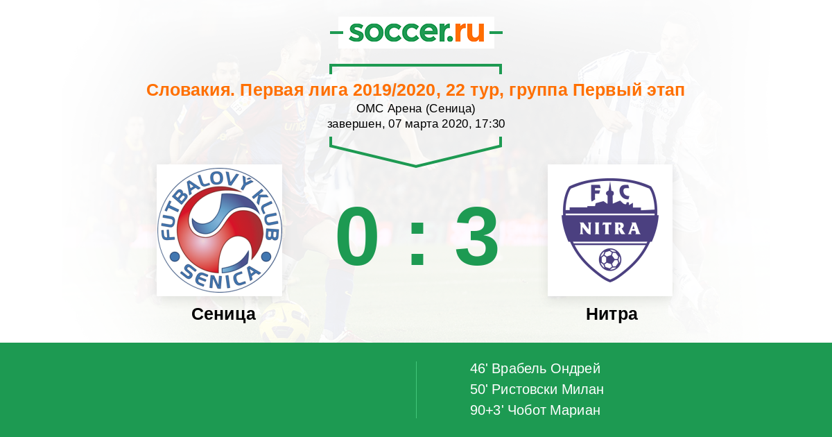 Словакия. Суперлига 10.03.2018 Сеница Логотип футбольный клуб Сеница 0:1 Логотип футбольный клуб Нитра Нитра