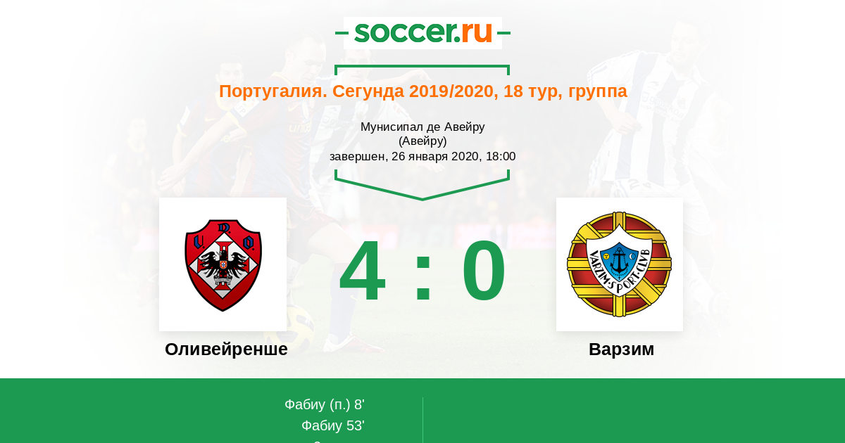 Португалия. Второй дивизион 22.01.2011 Варзим Логотип футбольный клуб Варзим (Повуа-де-Варзин) 1:1 Логотип футбольный клуб Оливейренше (Оливейра-де-Аземейш) Оливейренше