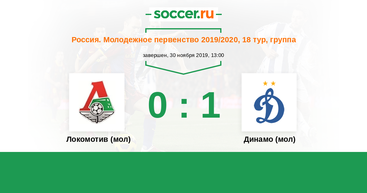 Россия. Премьер-Лига U21 29.03.2019 Динамо (мол) Логотип футбольный клуб Динамо (мол) (Москва) 0:1 Логотип футбольный клуб Локомотив (мол) (Москва) Локомотив (мол)