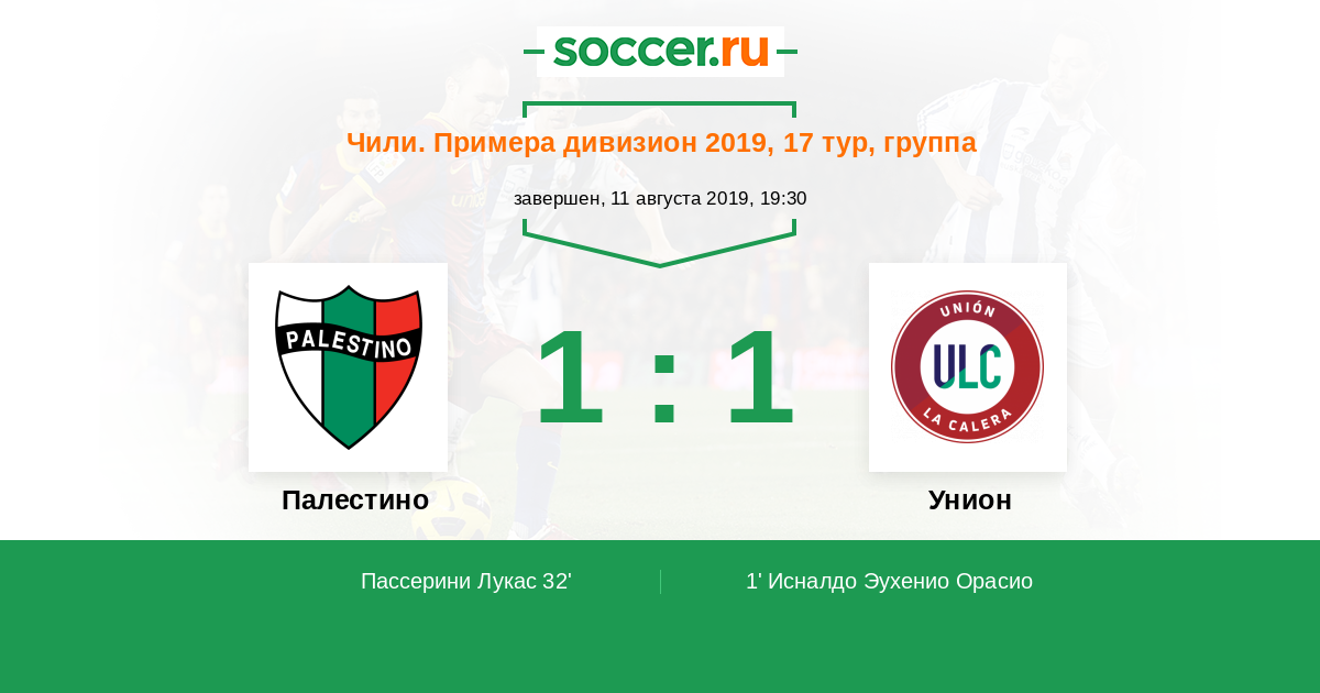 Чили. Примера дивизион 04.08.2018 Унион Логотип футбольный клуб Унион (Ла Калера) 1:1 Логотип футбольный клуб Палестино (Сантьяго) Палестино