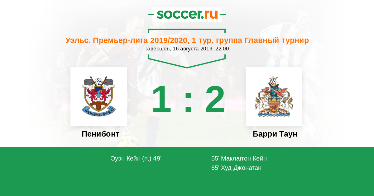 Уэльс. Премьер-Лига 22.08.2025 Барри Таун Логотип футбольный клуб Барри Таун 2:3 Логотип футбольный клуб Пенибонт (Бридгенд) Пенибонт