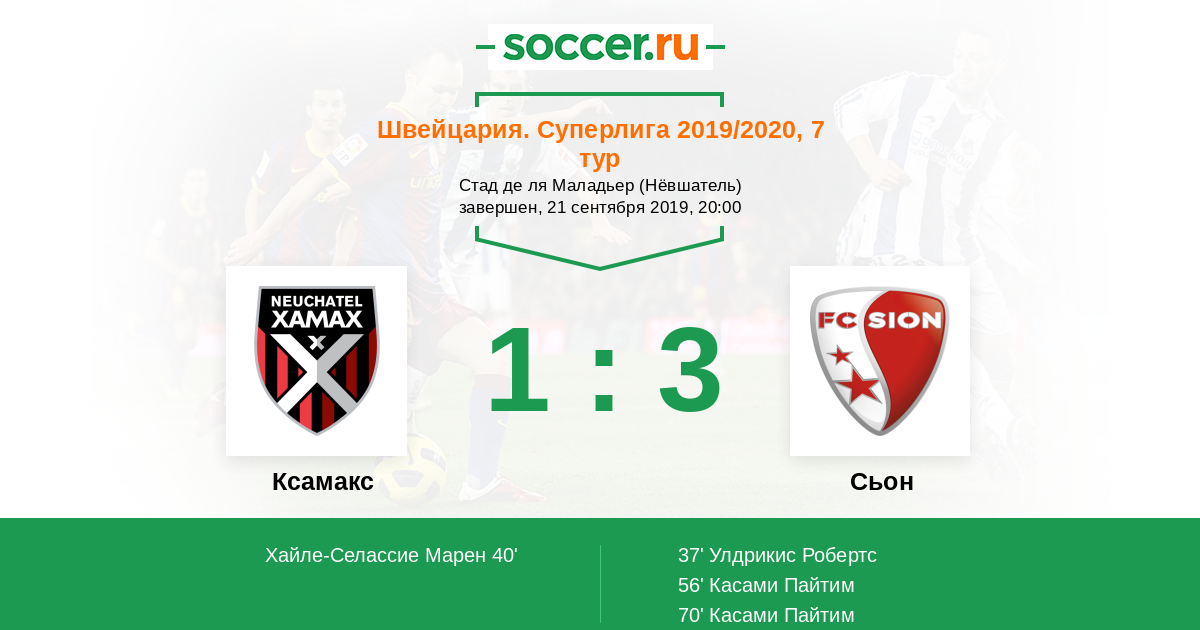 Швейцария. Суперлига 07.10.2018 Ксамакс Логотип футбольный клуб Ксамакс (Невшатель) 1:1 Логотип футбольный клуб Сьон Сьон