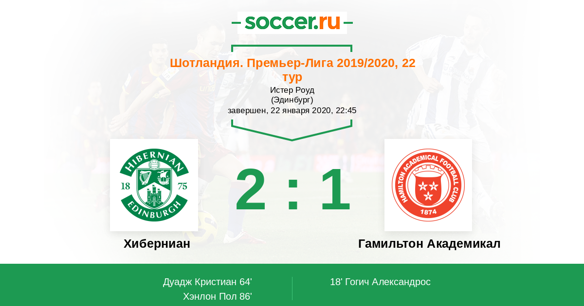 Шотландия. Премьер-Лига 20.02.2021 Хиберниан Логотип футбольный клуб Хиберниан (Эдинбург) 2:0 Логотип футбольный клуб Гамильтон Академикал Гамильтон Академикал