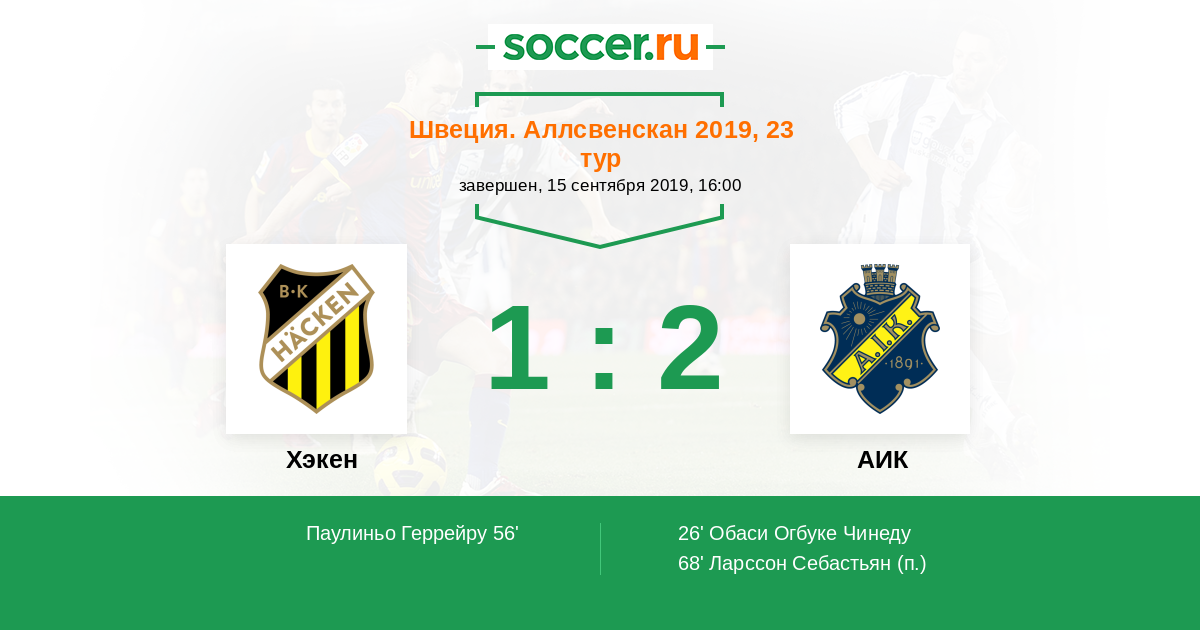 Швеция. Аллсвенскан 19.09.2015 АИК Логотип футбольный клуб АИК (Стокгольм) 2:1 Логотип футбольный клуб Хэкен (Гетеборг) Хэкен