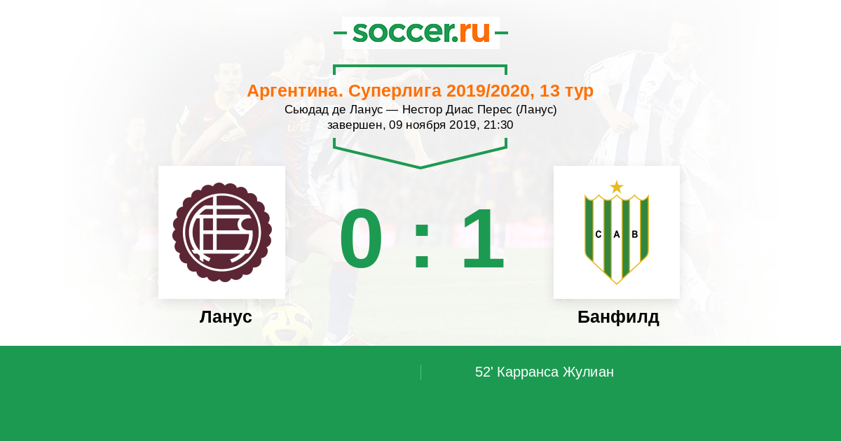 Аргентина. Суперлига 06.11.2011 Банфилд Логотип футбольный клуб Банфилд 1:2 Логотип футбольный клуб Ланус Ланус