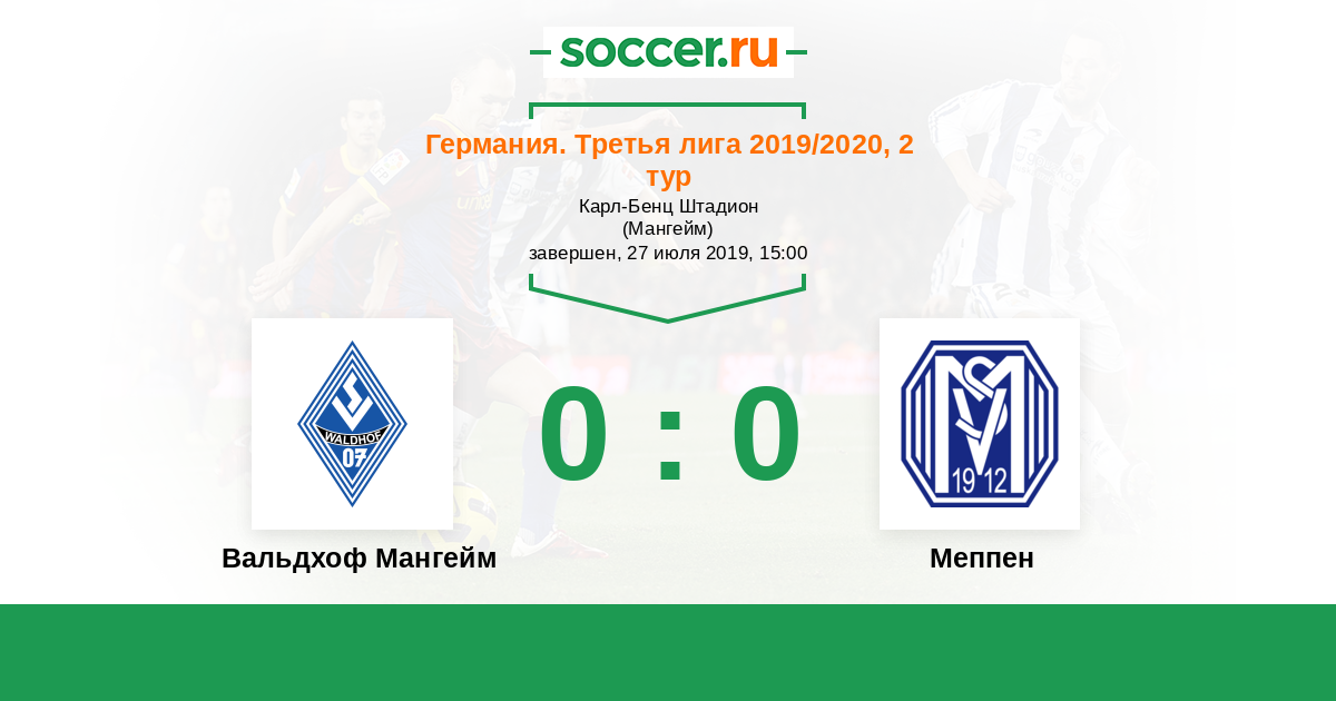 Германия. Третья лига 25.01.2020 Меппен Логотип футбольный клуб Меппен 0:1 Логотип Вальдхоф Мангейм Вальдхоф Мангейм