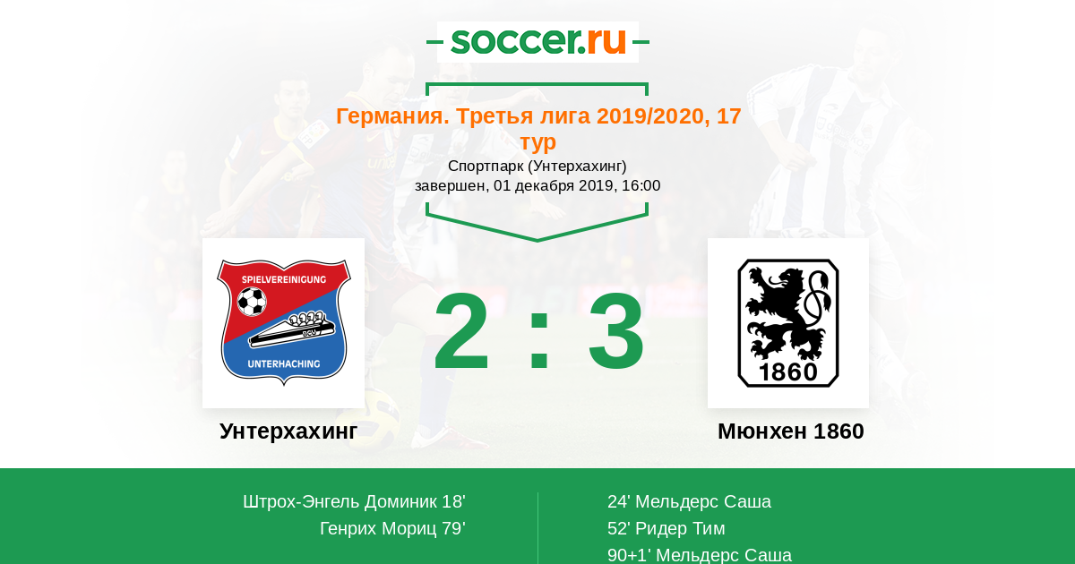 Германия. Третья лига 26.10.2020 Унтерхахинг Логотип футбольный клуб Унтерхахинг 0:2 Логотип футбольный клуб Мюнхен 1860 Мюнхен 1860