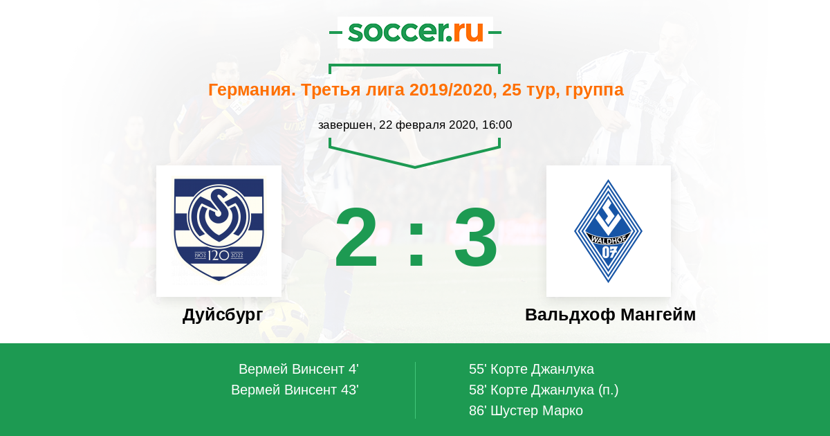 Германия. Третья лига 23.01.2023 Дуйсбург Логотип футбольный клуб Дуйсбург 1:3 Логотип Вальдхоф Мангейм Вальдхоф Мангейм