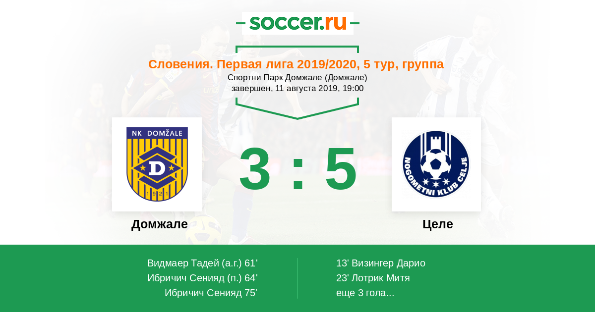 Словения. Первая Лига 12.09.2020 Целе Логотип футбольный клуб Целе 1:2 Логотип футбольный клуб Домжале Домжале