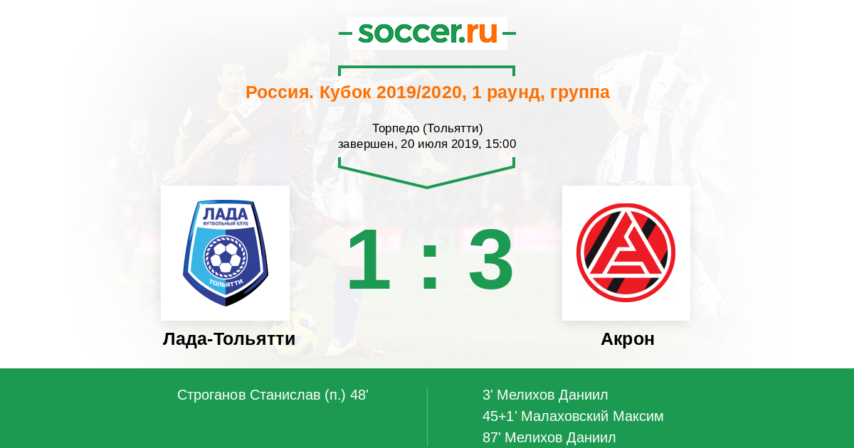 Россия. Вторая лига. Группа 4 08.08.2019 Акрон Логотип футбольный клуб Акрон (Тольятти) 3:1 Логотип футбольный клуб Лада-Тольятти Лада-Тольятти