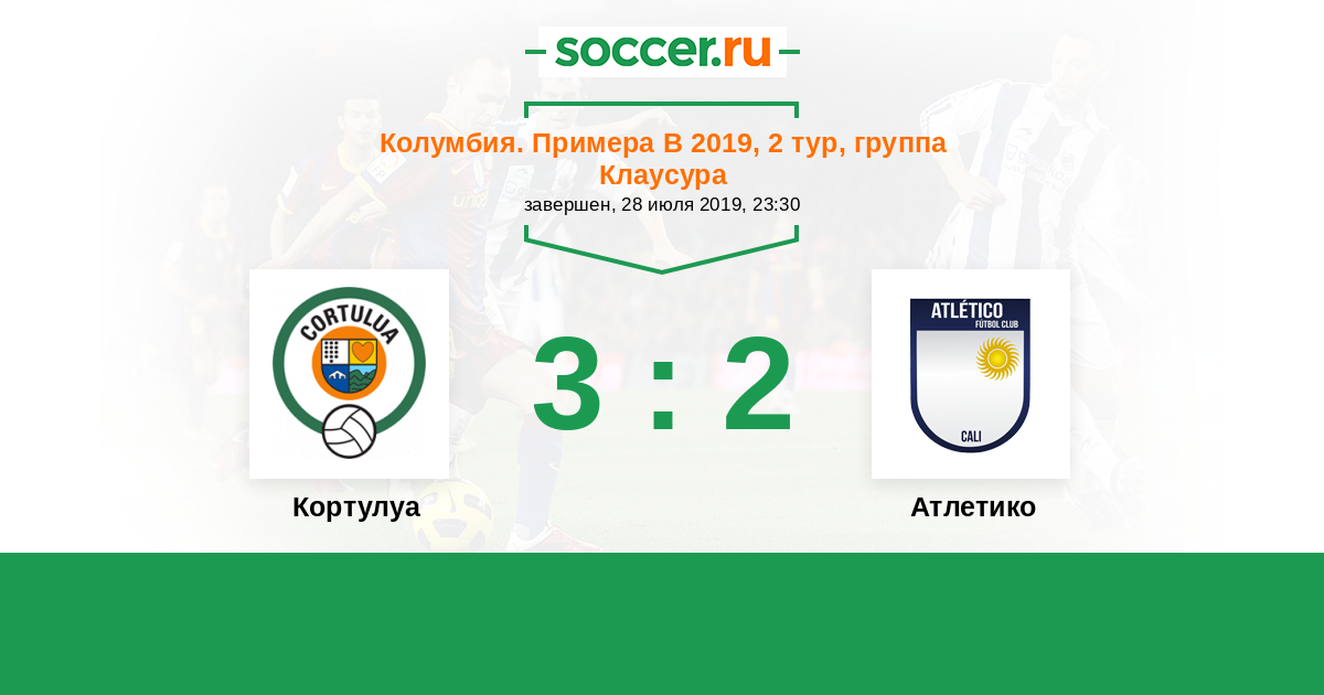 Колумбия. Примера B 29.07.2018 Кортулуа Логотип футбольный клуб Кортулуа 1:1 Логотип футбольный клуб Атлетико Кали Атлетико Кали