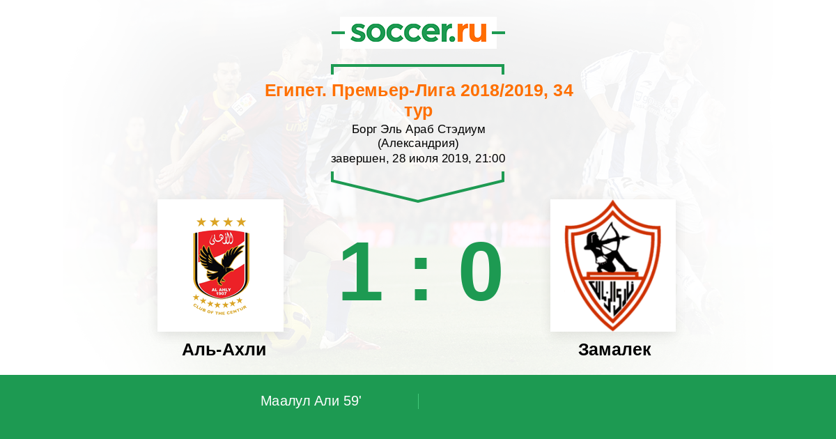 Египет. Премьер-Лига 30.03.2019 Замалек Логотип футбольный клуб Замалек (Каир) 0:0 Логотип футбольный клуб Аль-Ахли (Каир) Аль-Ахли