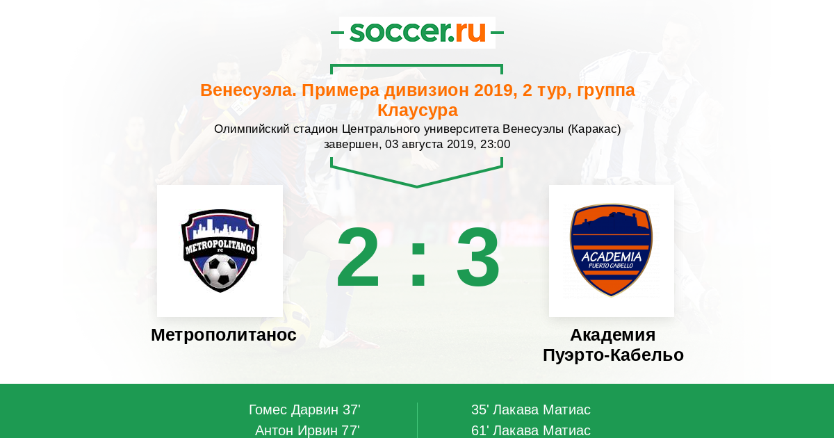 Венесуэла. Примера дивизион 03.09.2023 Метрополитанос Логотип футбольный клуб Метрополитанос (Лос-Текес) 2:1 Логотип футбольный клуб Пуэрто-Кабельо Пуэрто-Кабельо