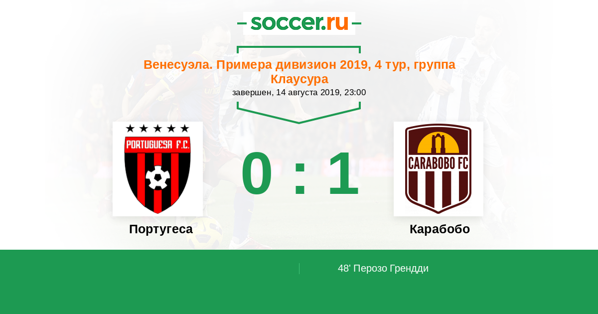 Венесуэла. Примера дивизион 21.10.2018 Португеса Логотип футбольный клуб Португеса (Акаригуа) 1:0 Логотип футбольный клуб Карабобо (Валенсия) Карабобо