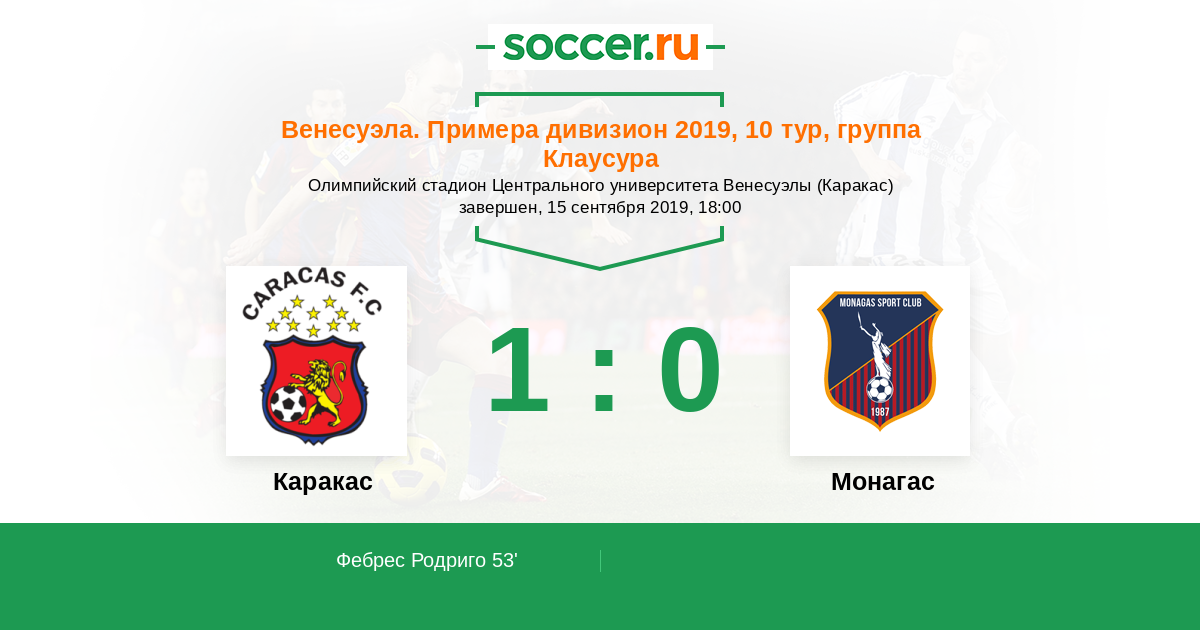 Венесуэла. Примера дивизион 24.09.2018 Монагас Логотип футбольный клуб Монагас (Матурин) 2:0 Логотип футбольный клуб Каракас Каракас