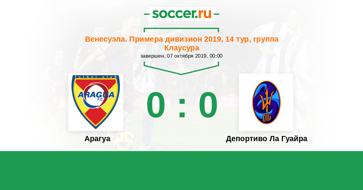 Венесуэла. Примера дивизион 07.10.2018 Арагуа Логотип Арагуа (Маракай) 1:2 Логотип футбольный клуб Депортиво Ла Гуайра (Каракас) Депортиво Ла Гуайра
