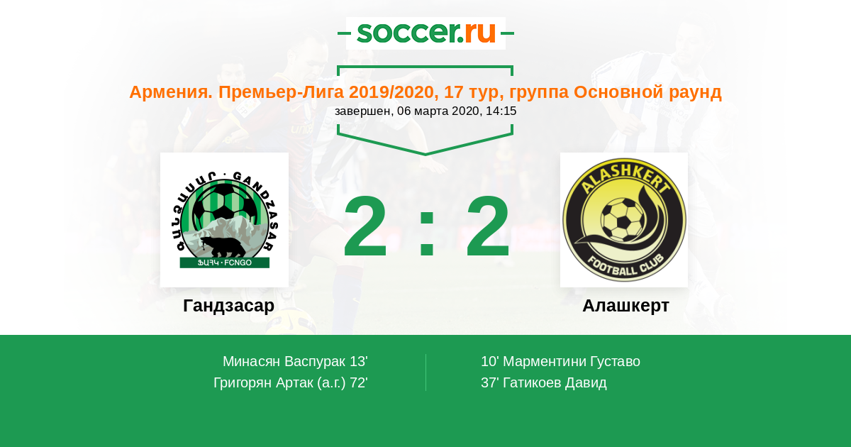 Армения. Премьер-лига 23.04.2016 Гандзасар Логотип футбольный клуб Гандзасар (Капан) 2:2 Логотип футбольный клуб Алашкерт (Мартуни) Алашкерт