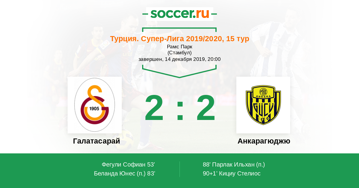 Турция. Суперлига 31.10.2020 Галатасарай Логотип футбольный клуб Галатасарай (Стамбул) 1:0 Логотип футбольный клуб Анкарагюджю Анкарагюджю