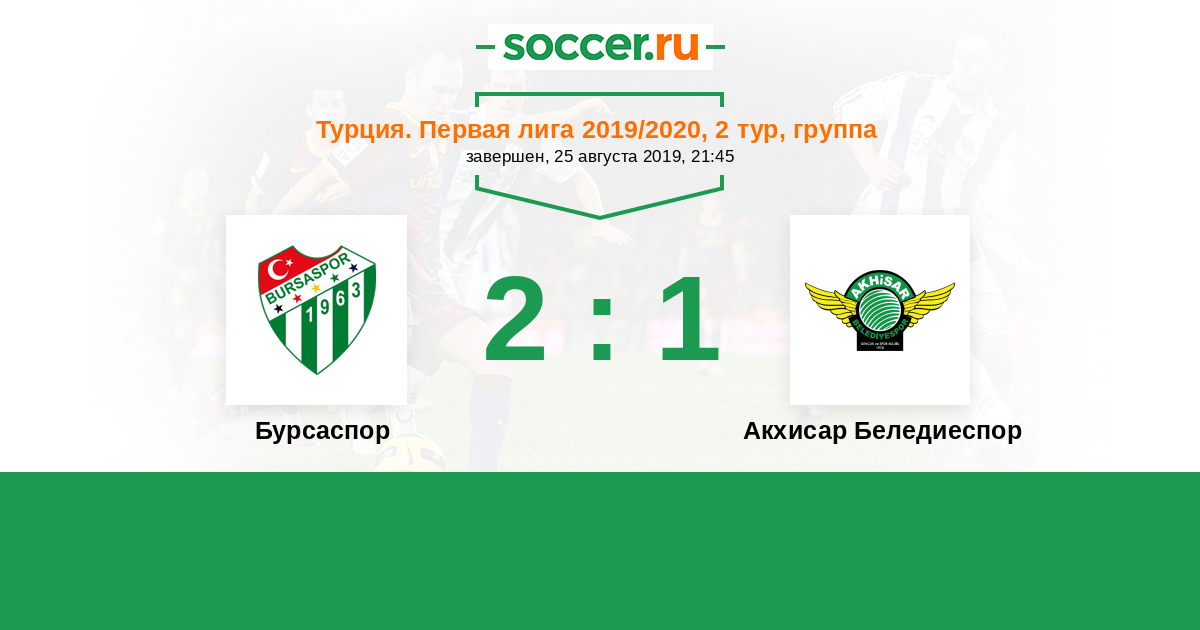 Турция. Первая лига 26.10.2020 Акхисар Беледиеспор Логотип футбольный клуб Акхисар Беледиеспор 2:1 Логотип футбольный клуб Бурсаспор Бурсаспор