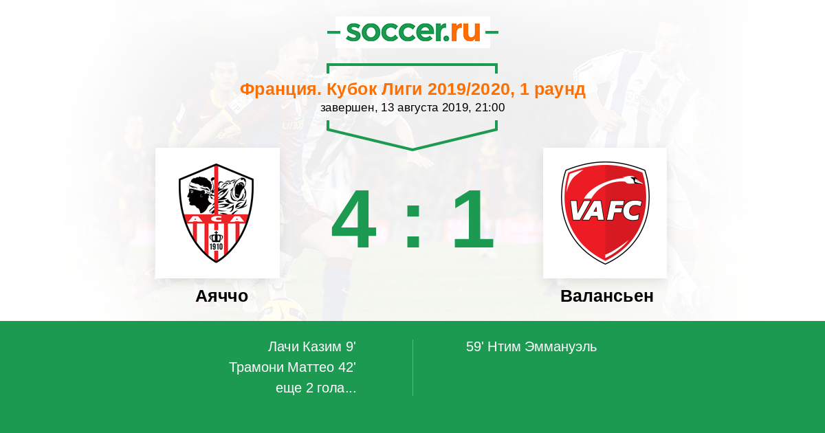 Франция. Лига 1 25.08.2012 Валансьен Логотип футбольный клуб Валансьен 3:0 Логотип футбольный клуб Аяччо Аяччо