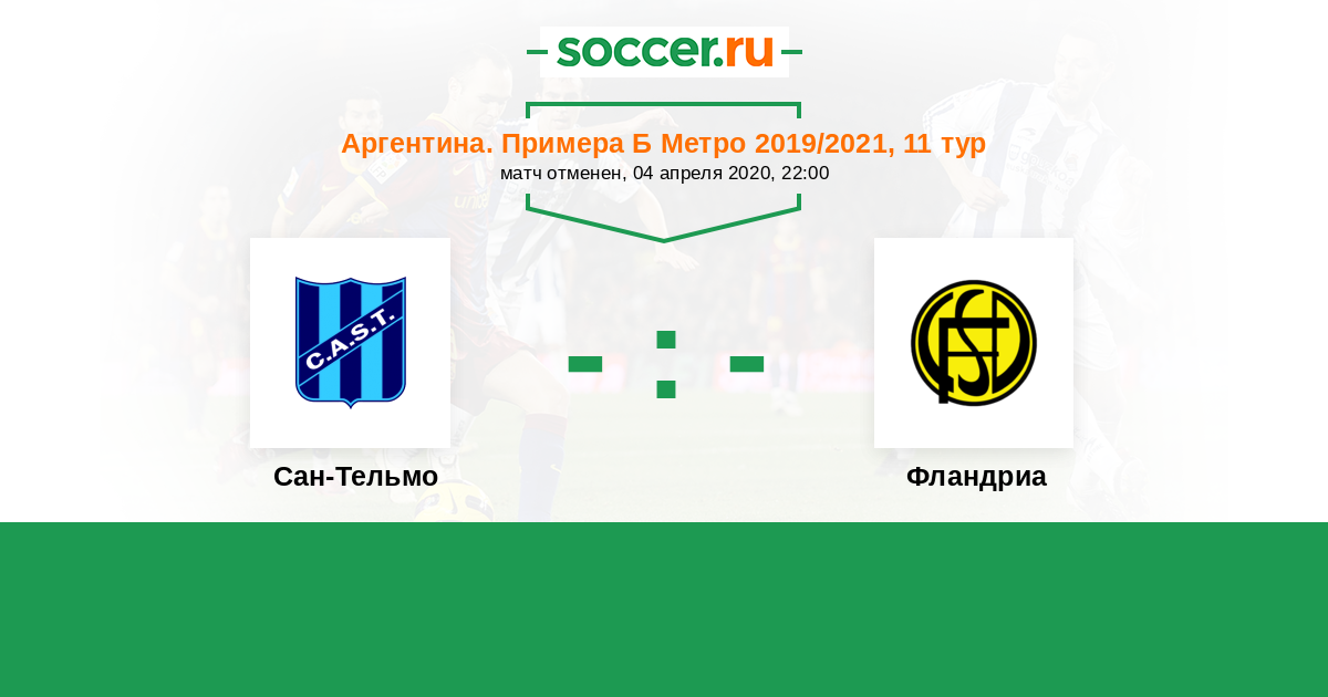 Аргентина. Примера Б Метро 14.04.2019 Сан-Тельмо Логотип футбольный клуб Сан-Тельмо 1:1 Логотип футбольный клуб Фландриа (Лухан) Фландриа