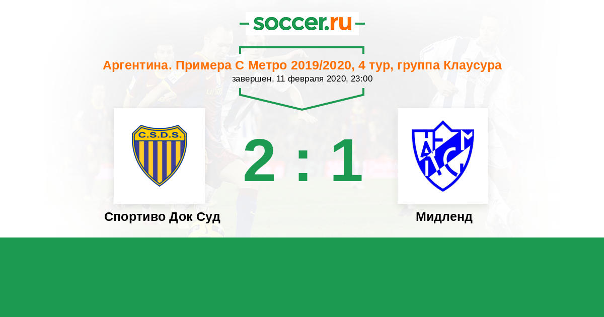 Аргентина. Примера С Метро 25.10.2018 Мидленд Логотип футбольный клуб Мидленд (Либертад) 1:0 Логотип футбольный клуб Спортиво Док Суд (Буэнос-Айрес) Спортиво Док Суд