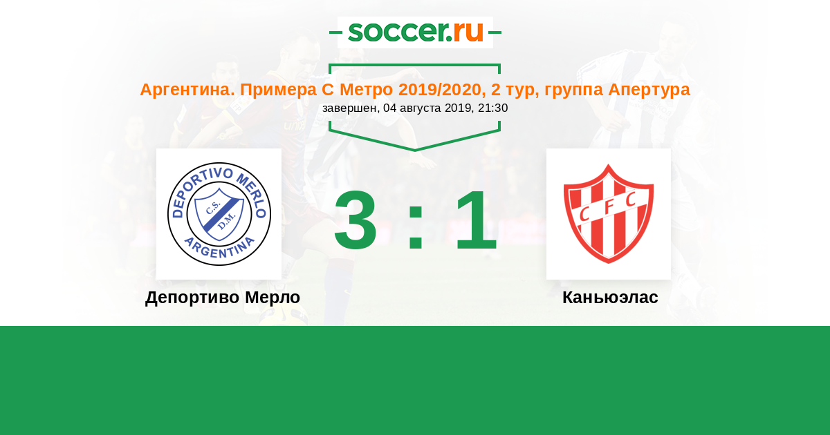 Аргентина. Примера С Метро 16.03.2019 Каньюэлас Логотип футбольный клуб Каньюэлас 1:1 Логотип футбольный клуб Депортиво Мерло Депортиво Мерло