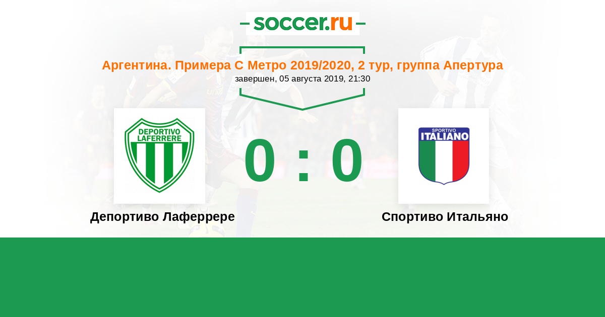 Аргентина. Примера С Метро 08.06.2021 Депортиво Лаферрере Логотип футбольный клуб Депортиво Лаферрере 1:1 Логотип футбольный клуб Спортиво Итальяно (Буэнос-Айрес) Спортиво Итальяно