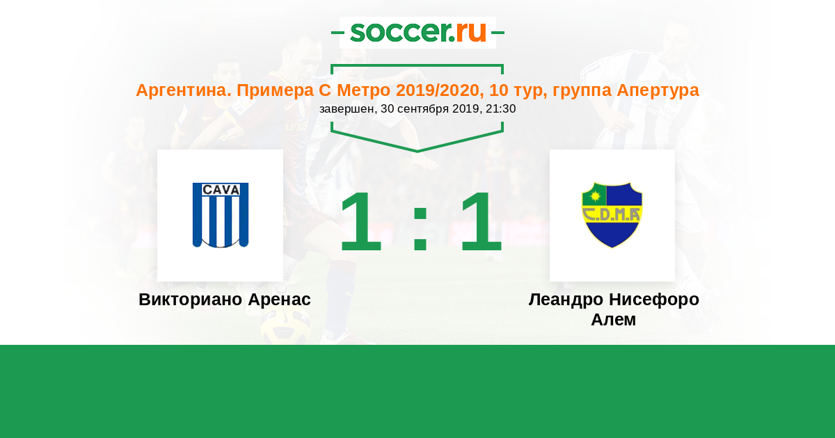 Аргентина. Примера Д 24.10.2016 Викториано Аренас Логотип футбольный клуб Викториано Аренас 1:1 Логотип футбольный клуб Леандро Нисефоро Алем (Буэнос-Айрес) Леандро Нисефоро Алем