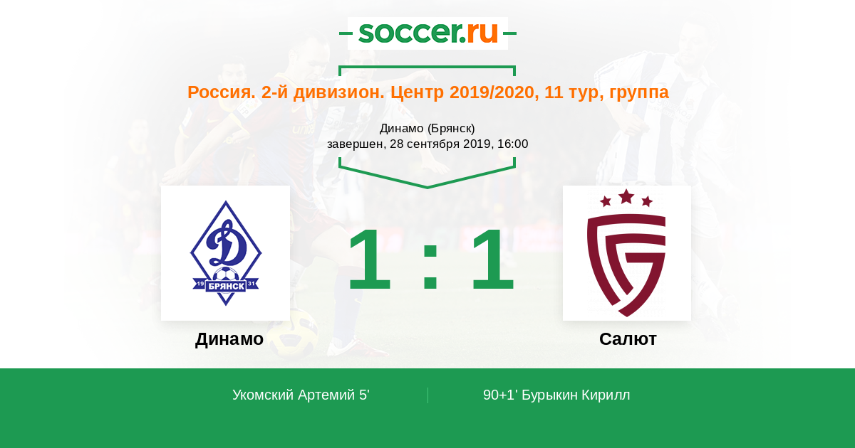 Россия. Первая лига 14.09.2010 Салют Логотип футбольный клуб Салют (Белгород) 4:2 Логотип футбольный клуб Динамо Брянск Динамо Брянск