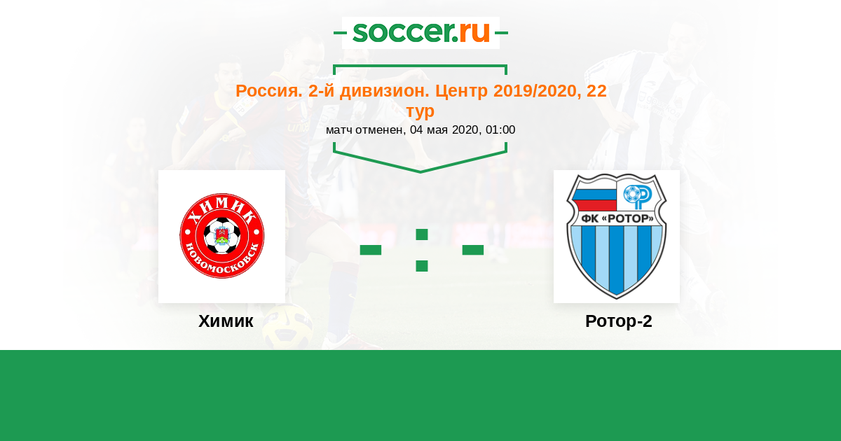 Россия. Вторая лига. Группа 3 21.09.2019 Ротор-2 Логотип футбольный клуб Ротор-2 (Волгоград) 0:3 Логотип футбольный клуб Химик (Новомосковск) Химик