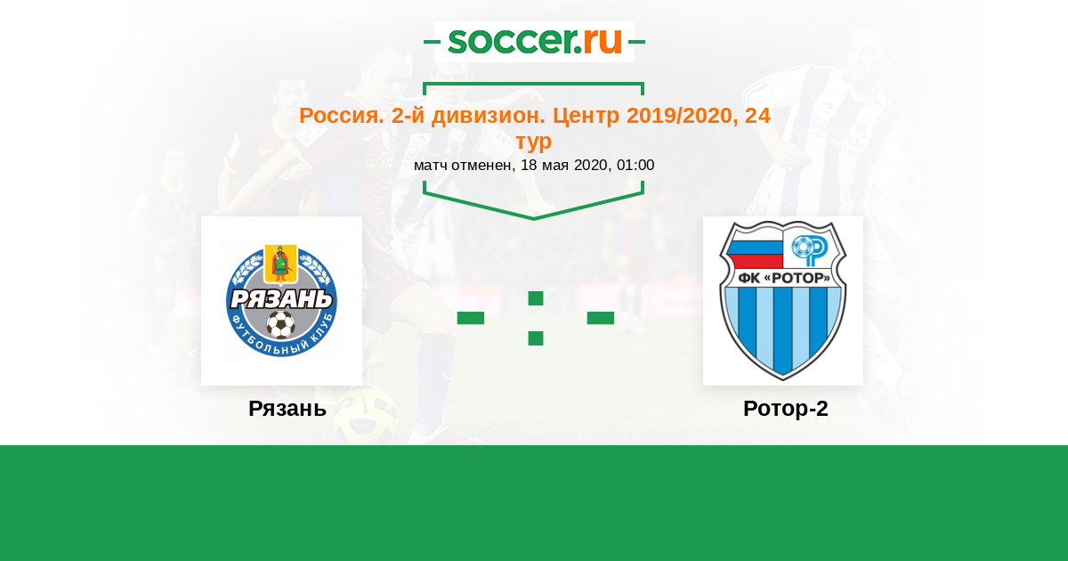 Россия. Вторая лига. Группа 3 18.07.2018 Рязань Логотип футбольный клуб Рязань 0:1 Логотип футбольный клуб Ротор-2 (Волгоград) Ротор-2