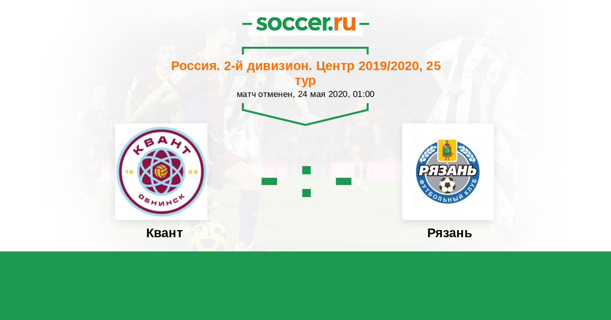 Россия. Вторая лига. Группа 3 27.04.2019 Рязань Логотип футбольный клуб Рязань 3:3 Логотип футбольный клуб Квант (Обнинск) Квант