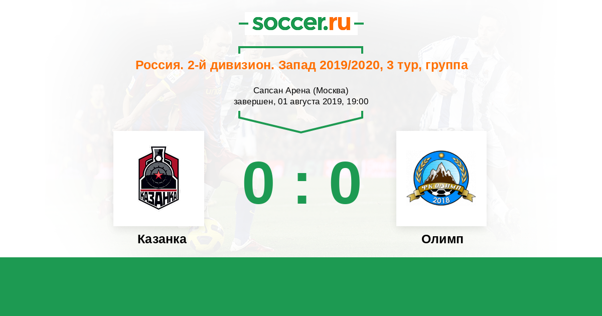 Россия. Вторая лига. Группа 2 26.10.2019 Олимп Логотип футбольный клуб Олимп (Химки) 1:1 Логотип футбольный клуб Казанка (Москва) Казанка