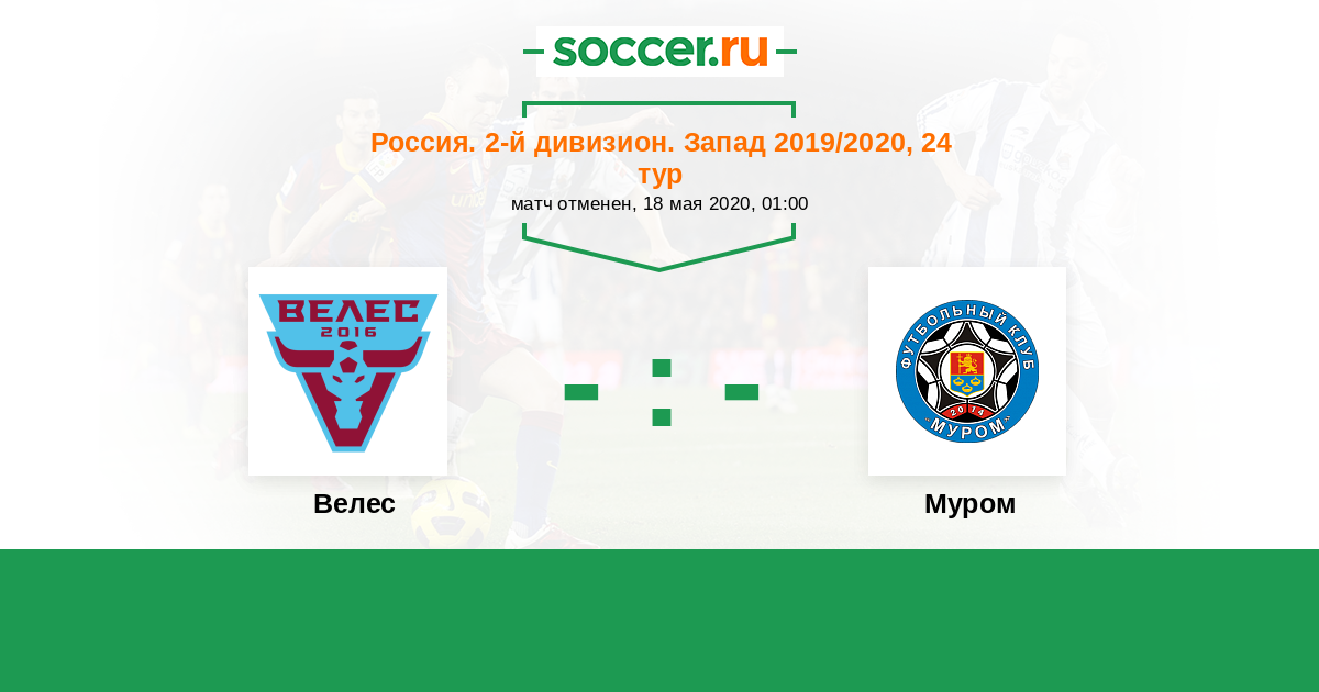 Россия. Вторая лига. Группа 2 20.04.2018 Муром Логотип футбольный клуб Муром 1:2 Логотип футбольный клуб Велес (Москва) Велес