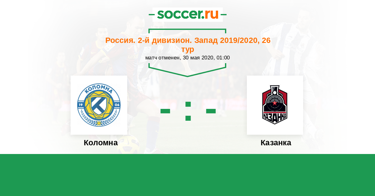 Россия. Вторая лига. Группа 2 09.08.2020 Казанка Логотип футбольный клуб Казанка (Москва) 2:1 Логотип футбольный клуб Коломна Коломна