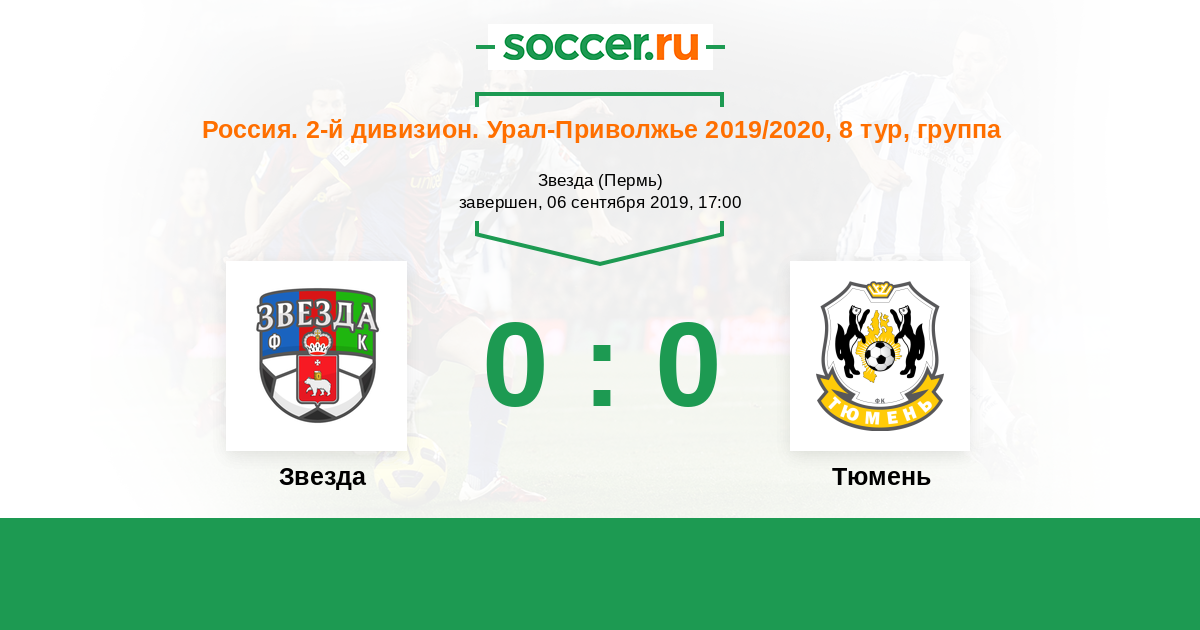 Россия. Вторая лига. Группа 4 09.11.2021 Тюмень   0:0 Логотип футбольный клуб Звезда (Пермь) Звезда