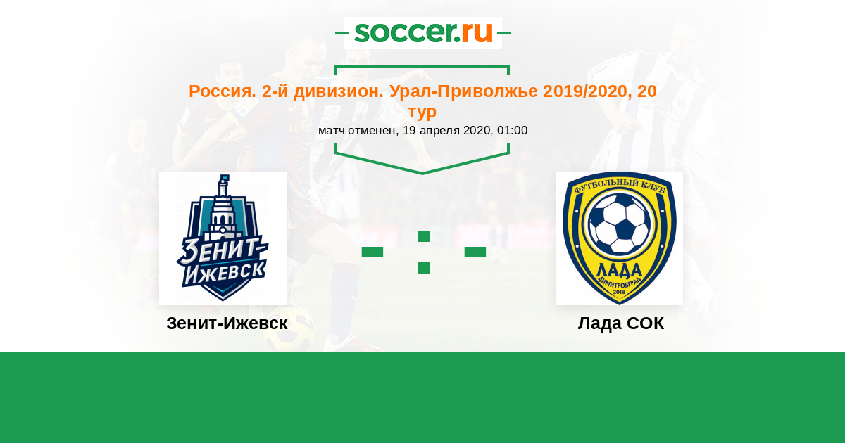 Россия. Вторая лига. Группа 4 24.08.2020 Лада СОК Логотип футбольный клуб Лада СОК (Димитровград) 2:0 Логотип футбольный клуб Зенит-Ижевск Зенит-Ижевск